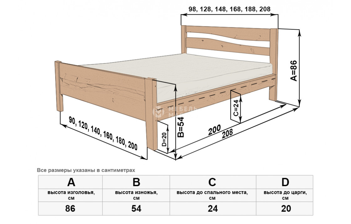 Кровать Карина-1 отличается простым лаконичным дизайном. Единственными украшениями модели служат игривые волнистые отверстия в спинках и естественный древесный рисунок. Ножки изделия, которое можно купить по демократичной цене в нашем интернет-магазине, защищают напольное покрытие от повреждений. Осуществляется доставка на дом по Воронежу и Воронежской области.| Размер | Цена | |