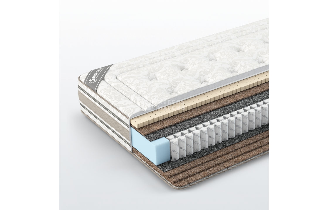 Кокос - переплетенные волокна кокосового ореха, растительного происхождения. Исключительные свойства кокоса в прочности, упругости и гигиеничности. Материал придает жесткости матрасу. Обладает отличной вентилируемостью, устойчив к любой влажности и перепадам температуры, гипоаллергенный и долговечный.